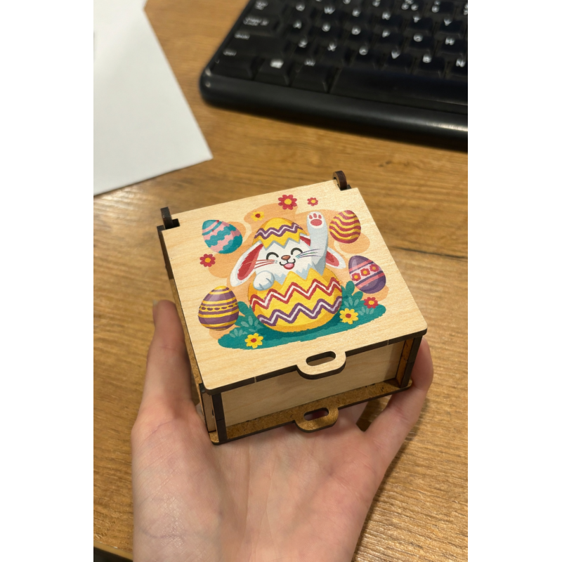 Pudełko doskonale sprawdzi się jako opakowanie na słodycze, drobne upominki lub element wielkanocnego koszyczka.