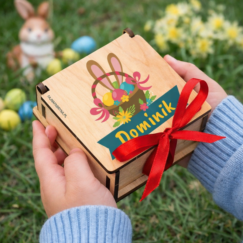 Personalizowane pudełko wielkanocne z imieniem to wyjątkowy sposób na zapakowanie świątecznego upominku dla dziecka.