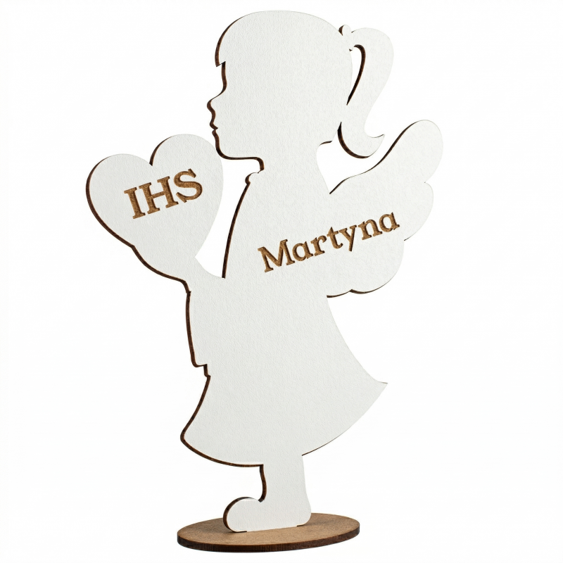 To również doskonały prezent i pamiątka I Komunii Świętej, która pozostanie pięknym wspomnieniem tego wyjątkowego dnia. Statuetka wykonana jest z wysokiej jakości drewna, co sprawia, że jest w pełni ekologiczna i bezpieczna dla środowiska. Delikatny kształt aniołka, serce z symbolem IHS oraz imię dziecka nadają dekoracji eleganckiego i uroczystego charakteru.