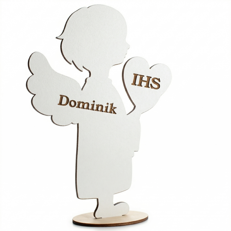 To również doskonały prezent i pamiątka I Komunii Świętej, która pozostanie pięknym wspomnieniem tego wyjątkowego dnia. Statuetka wykonana jest z wysokiej jakości drewna, co sprawia, że jest w pełni ekologiczna i bezpieczna dla środowiska. Delikatny kształt aniołka, serce z symbolem IHS oraz imię dziecka nadają dekoracji eleganckiego i uroczystego charakteru.
