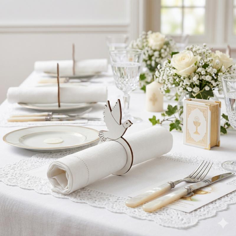 Serwetnik świetnie sprawdzi się jako ozdoba stołu komunijnego, zarówno w domu, jak i w restauracji czy sali przyjęć. Może być także miłym dodatkiem dla gości lub częścią większego zestawu dekoracji.