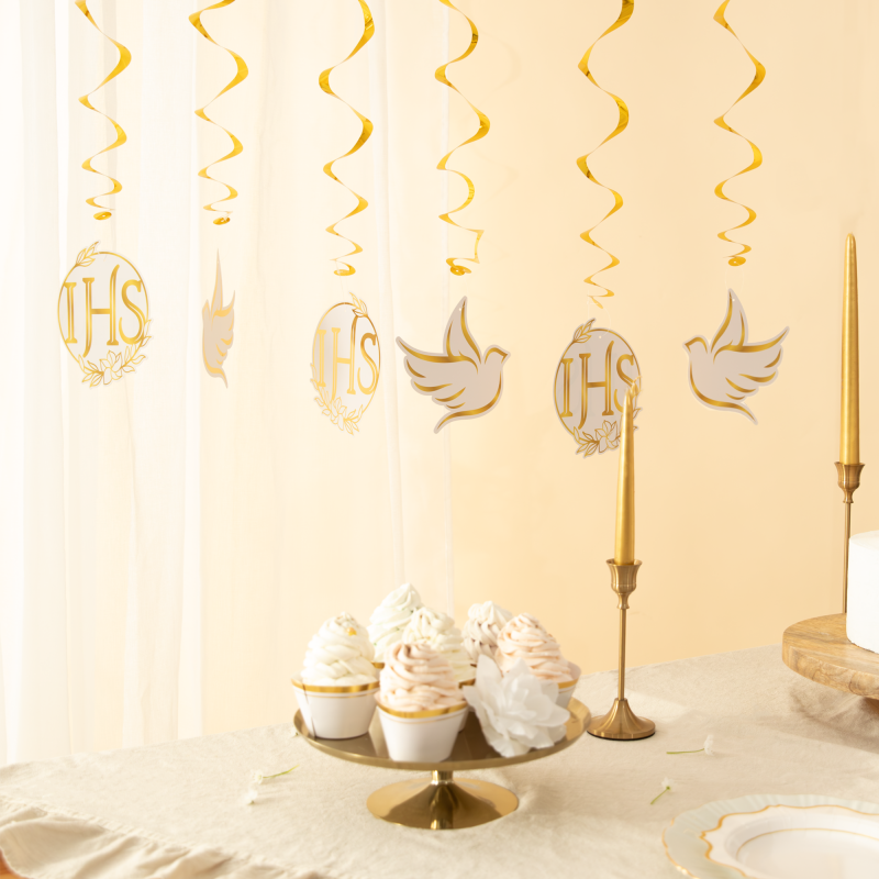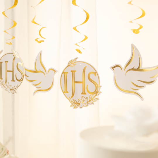 Świderki Komunia Święta IHS biało-złote 6 szt.