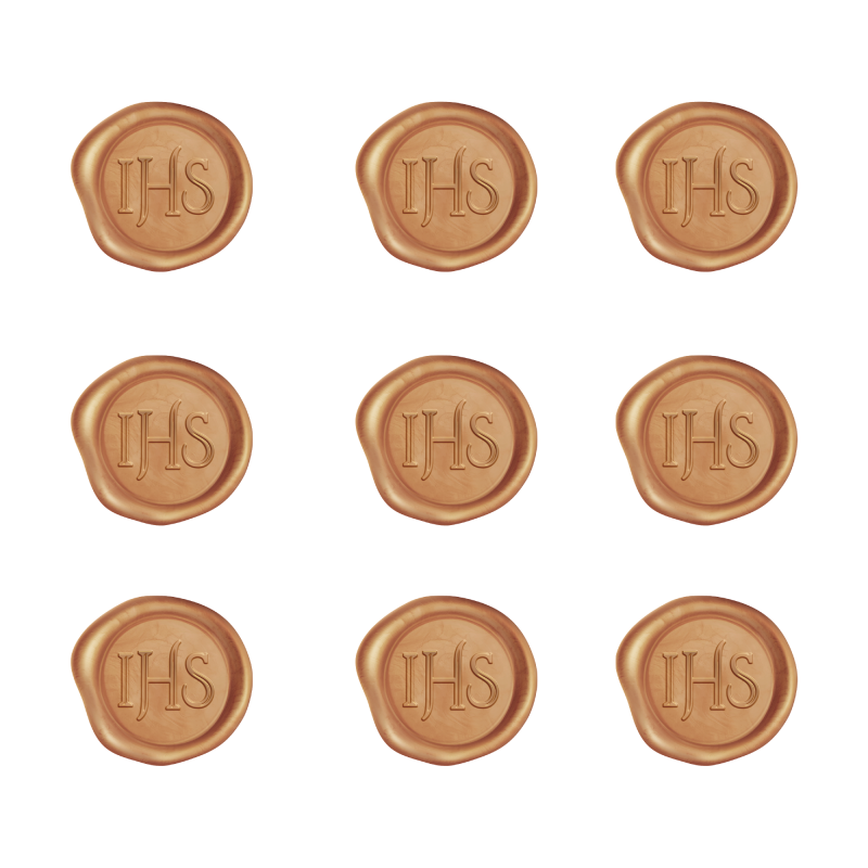 Pieczęć lakowa Komunia Święta IHS złota 9szt. - Laki samoprzylepne do zaproszeń - Elegancka ozdoba na Pierwszą Komunię