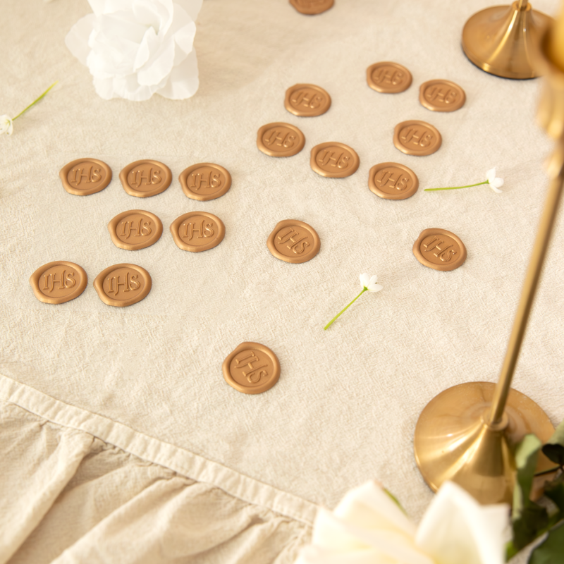 Pieczęć lakowa Komunia Święta IHS złota służąca do zapieczętowania kopert.