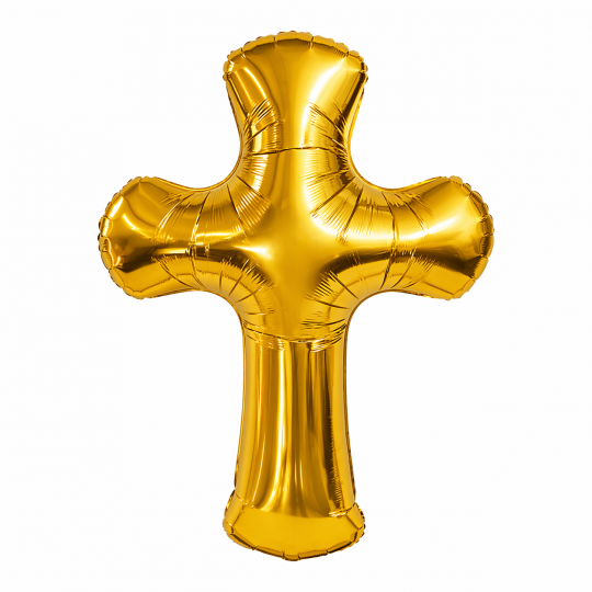 Elegancki, efektowny i niezwykle uroczyście prezentujący się balon foliowy w kszt.ałcie krzyża to idealna dekoracja na chrzest, komunię lub inne ważne uroczystości religijne.