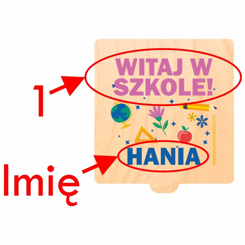 Prosimy wpisać tutaj dokładny tekst, jaki ma zostać umieszczony w tym miejscu. Ten upominek to dobry pomysł na prezent dla każdego ucznia od jego wychowawcy. Jeżeli zamawiasz więcej niż jeden i chcesz, aby na każdym było inne imię, wpisz w tym polu te imiona, rozdzielając przecinkiem. Jeśli imię będzie bardzo długie, zostanie pomniejszone tak, aby zmieściło się w docelowym polu. Jeśli chcesz, aby to miejsce było puste, zaznacz "Nie chcę personalizować tego pola (brak tekstu)".