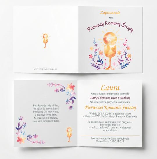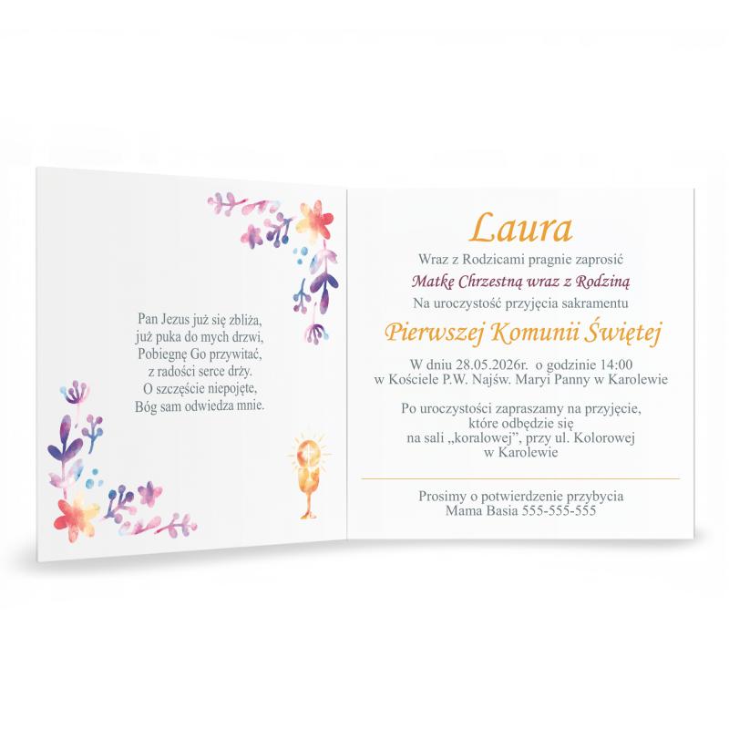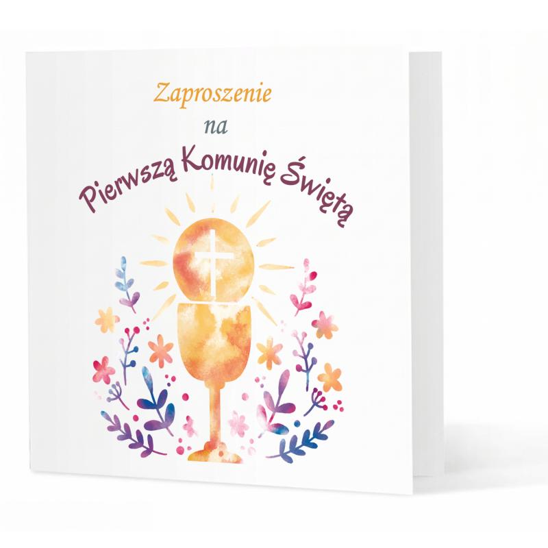 Zaproszenie na pierwszą komunię kielich kwiaty