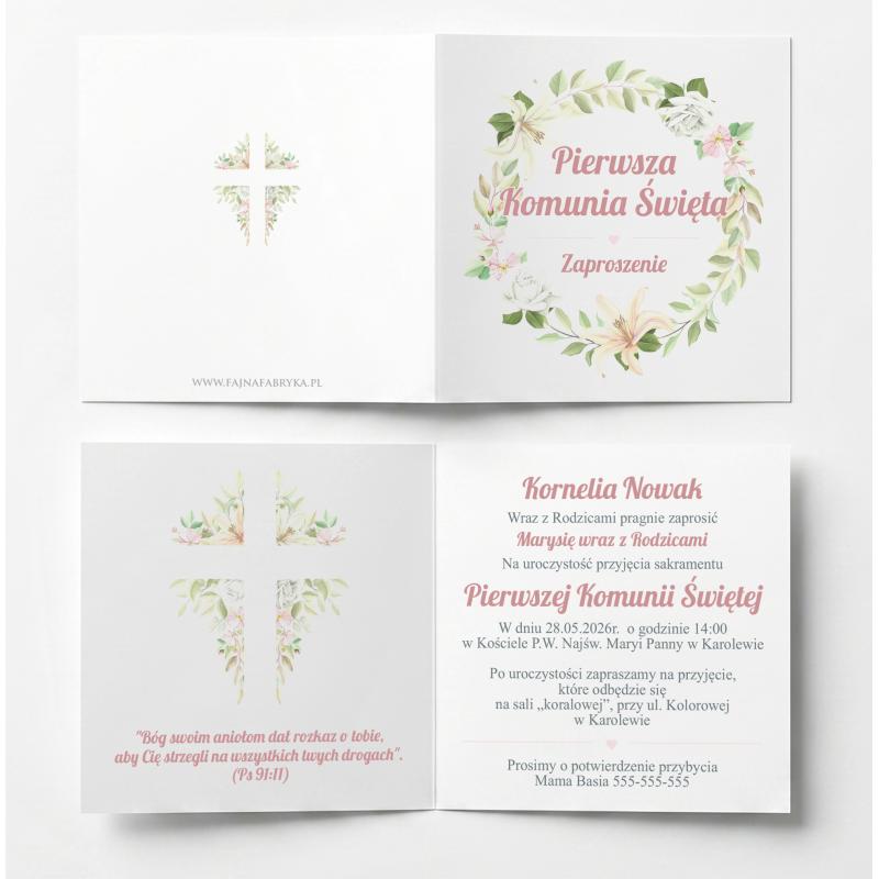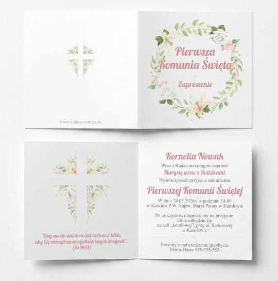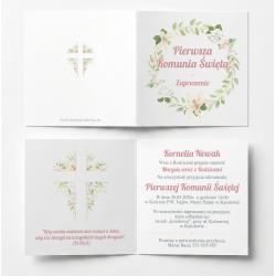 Zaproszenie komunijne kwiatowe wianek dziewczynka