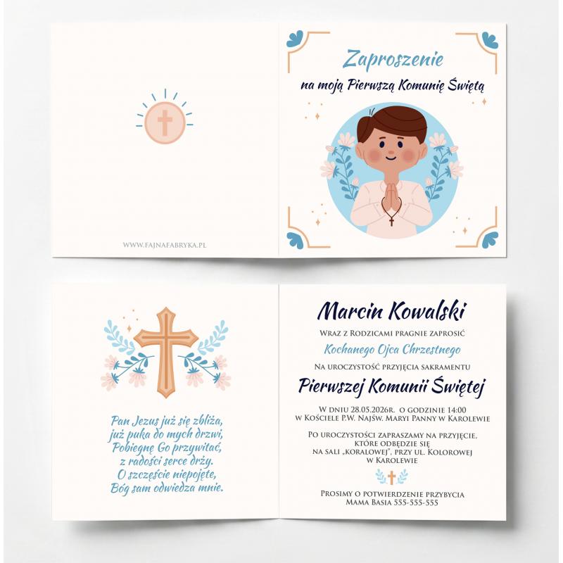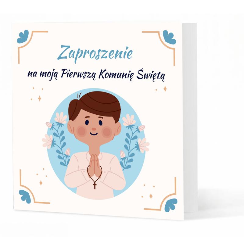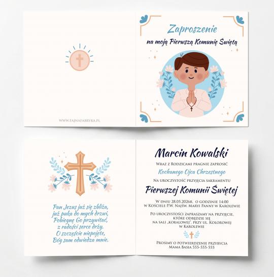Zaproszenie na Pierwszą Komunię Świętą chłopiec personalizowane