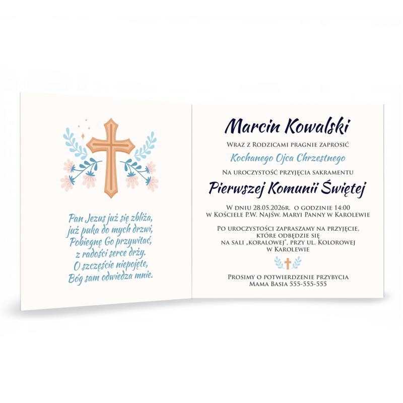 Produkt jest w pełni personalizowany, co pozwala dopasować treść do indywidualnych potrzeb i charakteru wydarzenia. To doskonały wybór dla rodziców, którzy szukają stylowego i jednocześnie dziecięcego zaproszenia komunijnego.