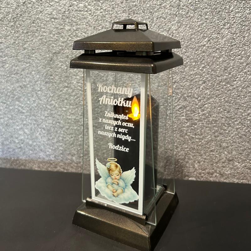Elegancki szklany znicz z możliwością personalizacji to doskonały sposób, by uczcić pamięć bliskiej osoby na różne okazje. Idealny na groby, łączy elegancję z osobistym przesłaniem.