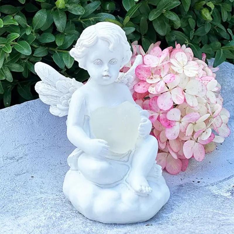 Figurka aniołka ze świecącym sercem LED – 12 cm