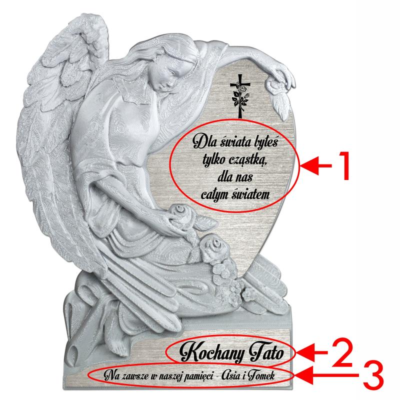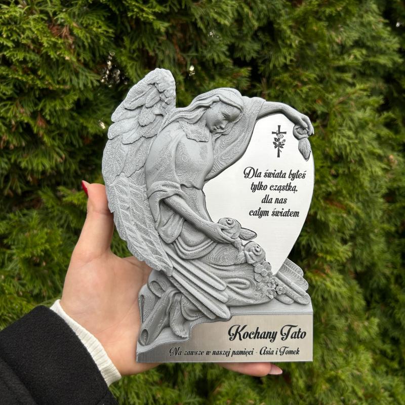 Najpiękniejsze pamiątki to te, które niosą w sobie indywidualne znaczenie. Dlatego ta figurka anioła z sercem oferuje możliwość personalizacji dedykacji. Możesz umieścić na niej krótki napis, imię osoby zmarłej, sentencję, cytat lub słowa, które najlepiej oddają Twoje uczucia. Taki osobisty akcent nadaje całości niepowtarzalny charakter, czyniąc z tej figurki nie tylko ozdobę, ale i wyjątkową pamiątkę pełną emocji i wspomnień. Każdy napis wykonany jest z dbałością o szczegóły, co gwarantuje jego trwałość i estetykę. Dzięki temu figurka zachowa swój piękny wygląd przez długi czas, nie tracąc symbolicznej wartości.