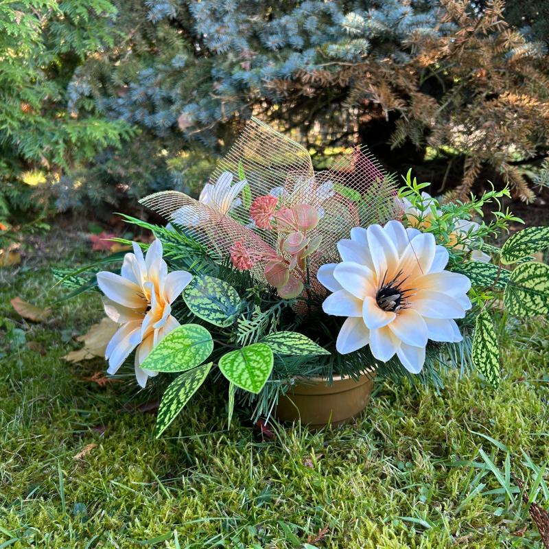 Stroik nagrobny w doniczce mix kwiatów dekoracja na grób