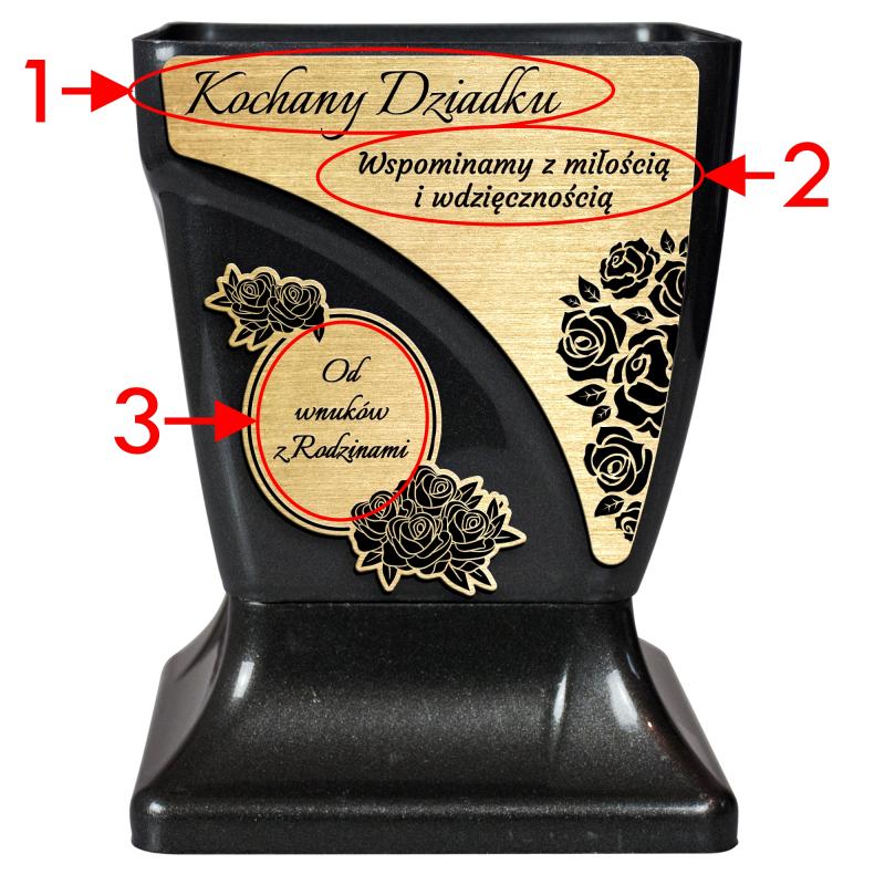 Jednym z najważniejszych elementów, które wyróżniają misę donicę nagrobną z dedykacją, jest możliwość personalizacji napisu. Dzięki temu produkt nabiera osobistego charakteru, stając się nie tylko ozdobą, lecz także symbolem pamięci i uczuć wobec osoby zmarłej. Na tabliczce można umieścić imię, cytat, fragment modlitwy lub własne słowa, które mają szczególne znaczenie. Personalizowana dedykacja sprawia, że donica staje się niepowtarzalna i wyjątkowa – stanowi indywidualny gest wdzięczności, miłości i szacunku. Taki akcent nadaje całości elegancji i głębi, podkreślając, że miejsce spoczynku bliskiej osoby jest otaczane troską i sercem. Dedykacja jest wykonana trwałą metodą, odporną na ścieranie i blaknięcie, dzięki czemu zachowa swój wygląd przez wiele lat.