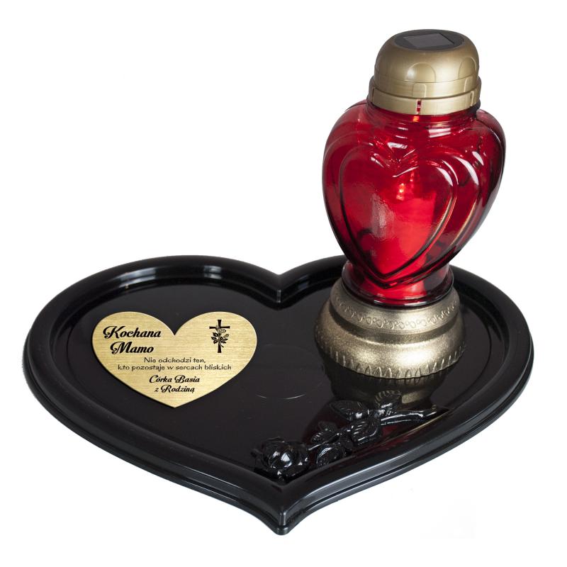Personalizowany podstawek w kształcie serca to elegancka i symboliczna dekoracja, która w piękny sposób podkreśli pamięć o bliskich. Wykonany z trwałych, odpornych na warunki atmosferyczne materiałów, doskonale sprawdzi się jako baza pod znicz lub stroik.