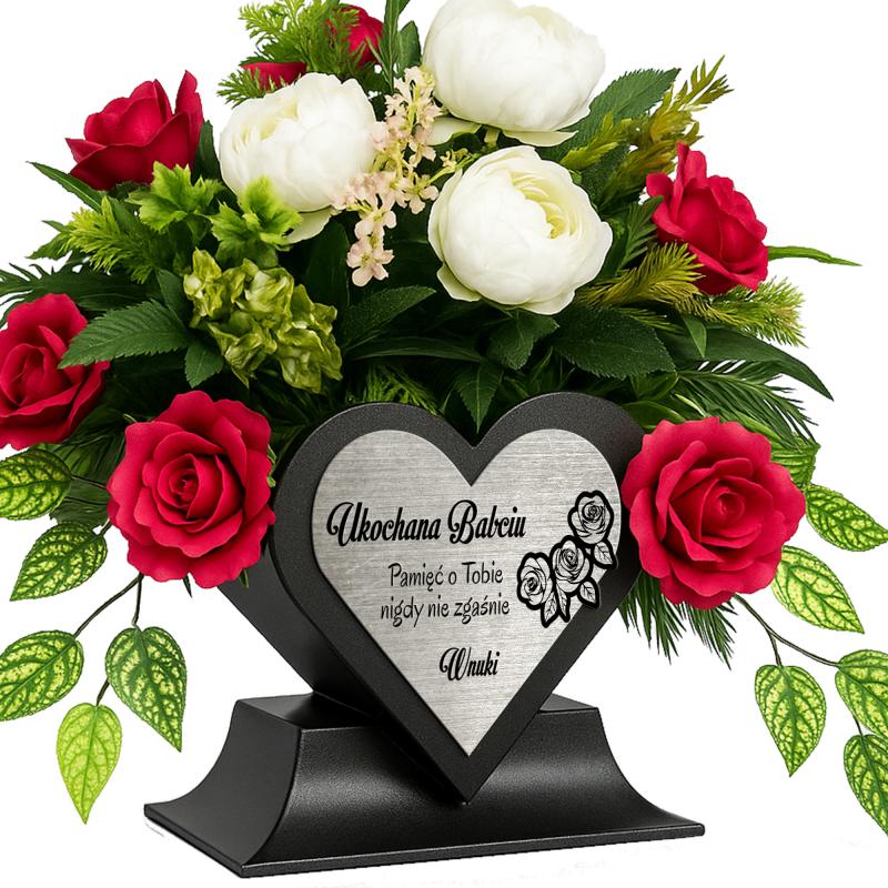 Doniczka w kształcie serca z możliwością personalizacji to elegancka i symboliczna dekoracja nagrobna, która w piękny sposób wyraża pamięć i uczucia wobec bliskich. Wykonana z trwałych, estetycznych materiałów, doskonale prezentuje się zarówno samodzielnie, jak i z własnoręcznie przygotowaną kompozycją kwiatową.